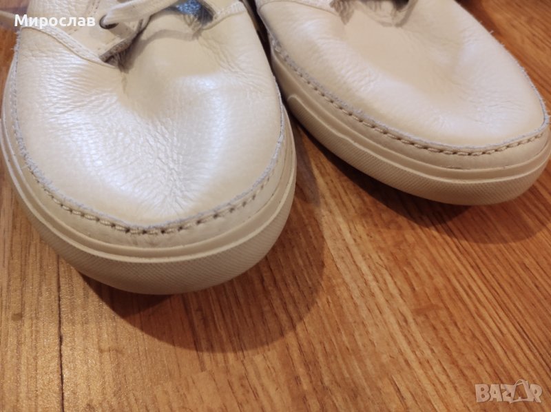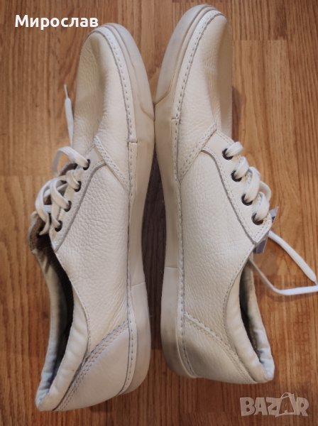 Бели, естествена кожа, дишаща материя, изцяло шити, с връзки. Номер 45.