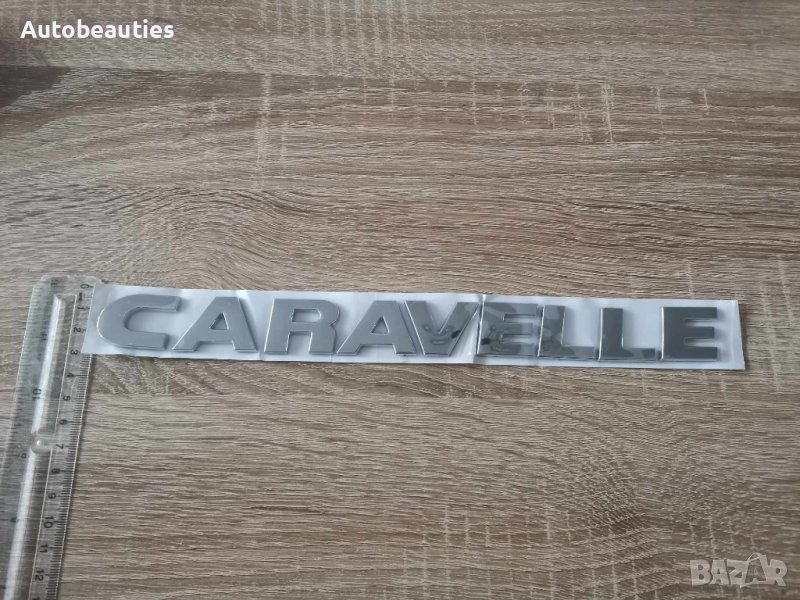Нов надпис в сребрист цвят за модела Caravelle Каравел на Volkswagen Фолксваген. Размерите са дадени на снимките.