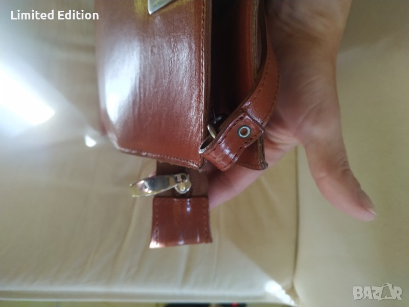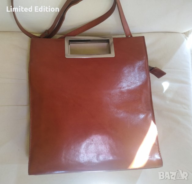 Италианска кожена чанта. Hand made in Italy. Изчистен италиански дизайн без грозни лога. Телешки бокс. Естествена кожа. Практически нова.