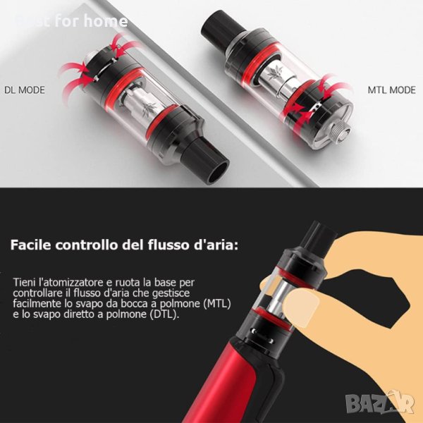 Резервоар: промяна между DL и MTL чрез просто завинтване на основата на място, за да контролирате въздушния поток.