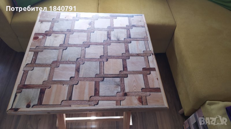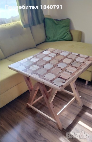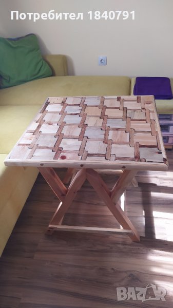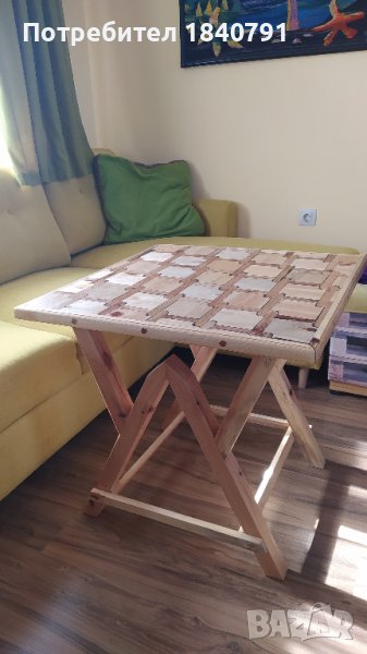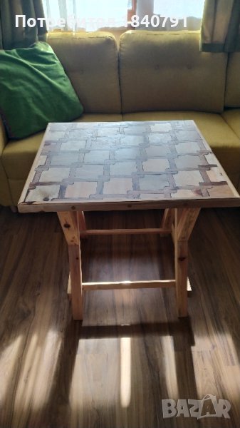 НОВА, оригинална малка маса за кафе/интериор, изработена в комбинация от бук и бор. Цветовата комбинация се дължи на различната дървесина – не на изкуствено оцветяване.