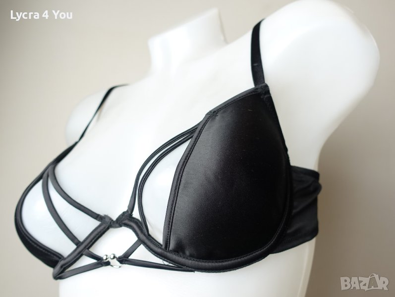 Като нов, ползван за кратко, страхотен черен сатенен сутиен с оформени чашки без подплънки, които са наполовина разкриващи и с изключително секси, и неустоима визия.