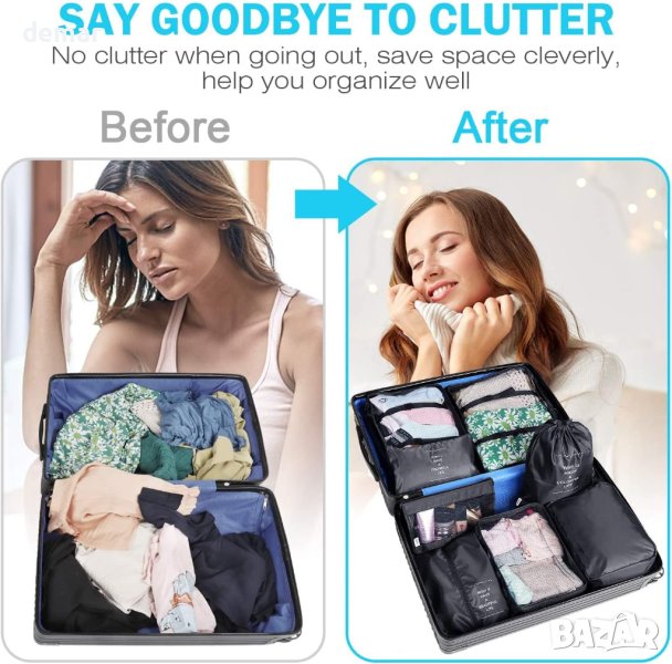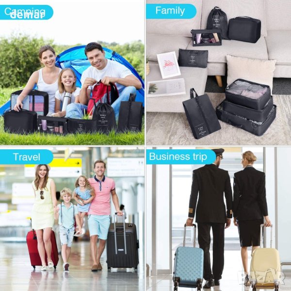 Опростете опаковането си с комплекта органайзер за опаковане от 8 бр. Включва 3 мрежести опаковъчни куба за дрехи, 1 личен куб за бельо, чанта за пътни обувки, чанта за тоалетни принадлежности, чанта за пране и плоска чанта за дребни предмети. Тези органайзери разполагат с прозрачна мрежа за лесна видимост, фиксирана катарама, за да поддържат дрехите спретнати, и здрава дръжка за удобно носене. Изработени от висококачествени, издръжливи и водоустойчиви материали с първокласни ципове, те са идеални за пътуване, бизнес пътувания и др.