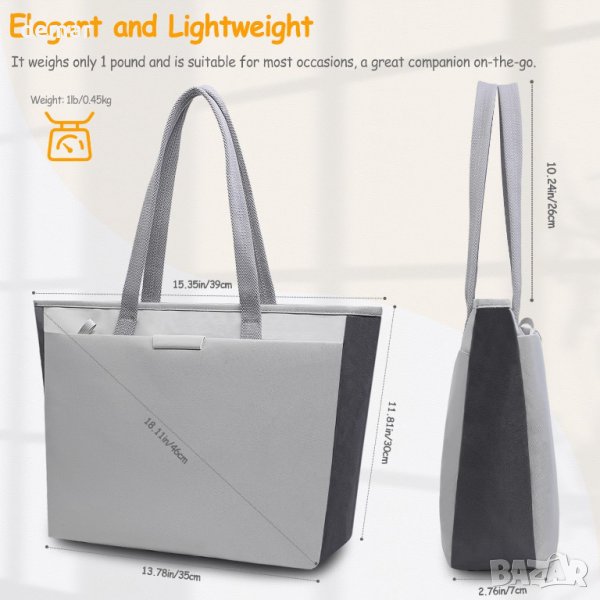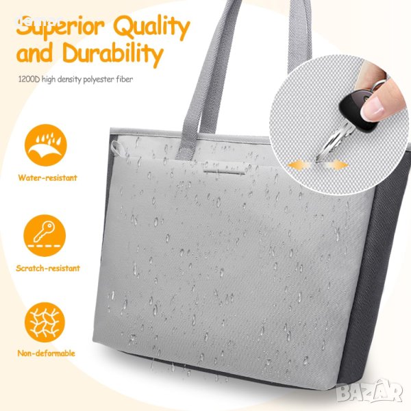 Дамска чанта водоустойчива с отделения за лаптоп - светлосива