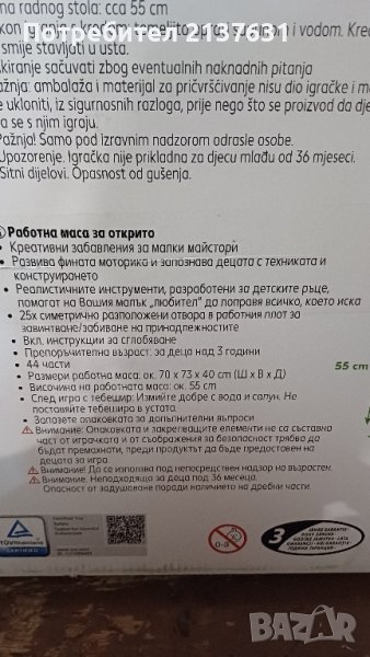 РАБОТНА МАСА за открито Креативни забавления за малки майстори Развива фината моторика и запознава децата с техниката и конструирането Реалистичните инструменти ,разработени за детските ръце , помагат на Вашия малък " любител " да поправя всичко , което иска