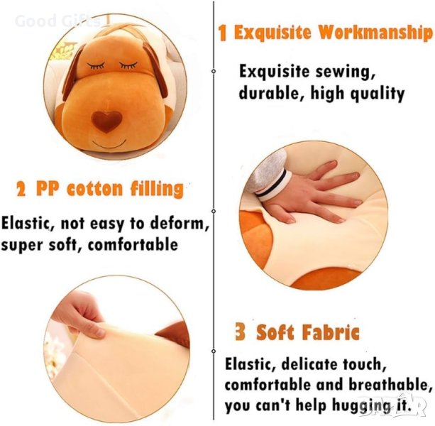 ✅【Удобен спътник】: Гладкото и деликатно докосване прави тази плюшена играчка куче да стане ваш спътник. Добър идеален за гушкане или използване като възглавница, когато сте уморени.