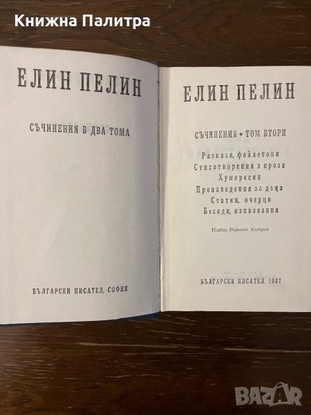 Елин Пелин. Съчинения в два тома. Том 1-2, снимка 1 - Българска литература - 42798142 Елин Пелин. Съчинения в два тома. Том 1-2, снимка 2 - Българска литература - 42798142 Елин Пелин. Съчинения в два тома. Том 1-2, снимка 3 - Българска литература - 42798142 1/3