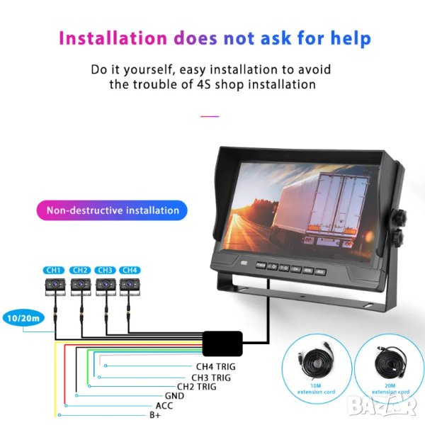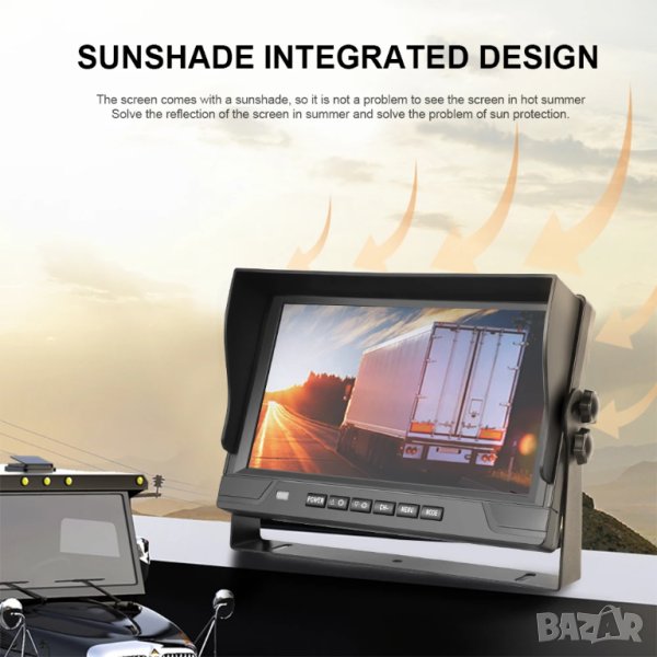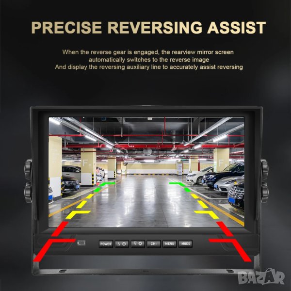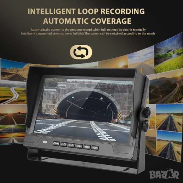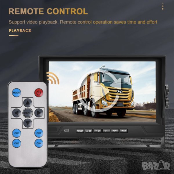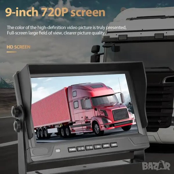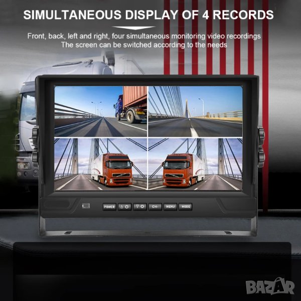 9 ″ LCD монитор с 4 броя камери за видеозапис и заден ход 18 LED IR за висококачествено нощно виждане водо и удароустойчиви.