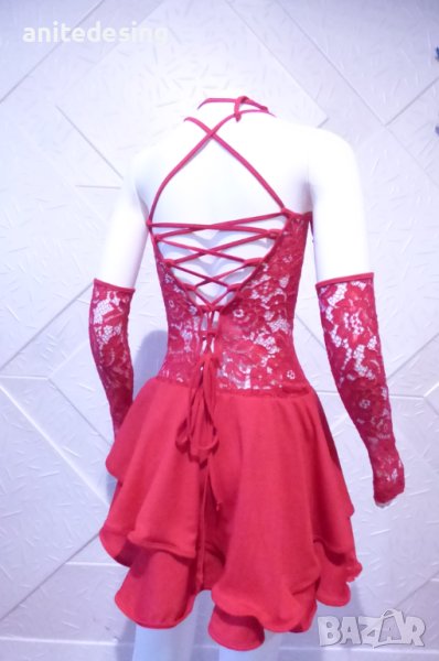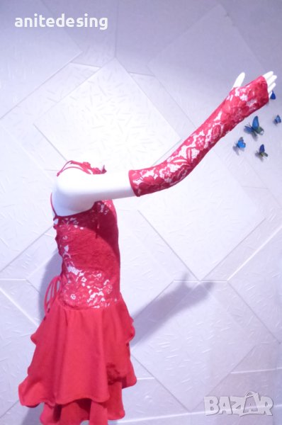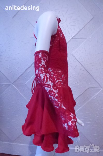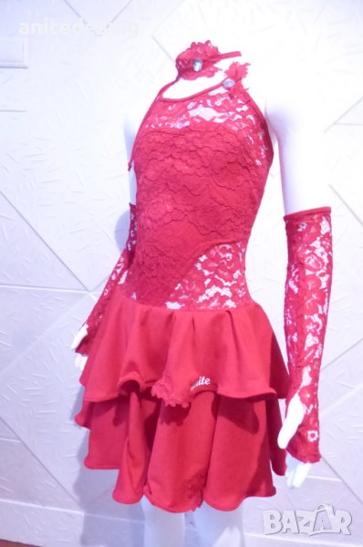 Детска рокля за спортни танци в червен цвят с дантела и гол гръб ,изработена от памук с еластан , дантела .