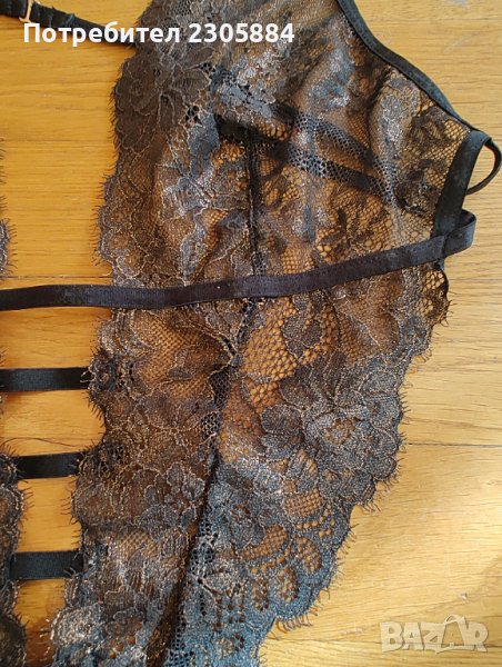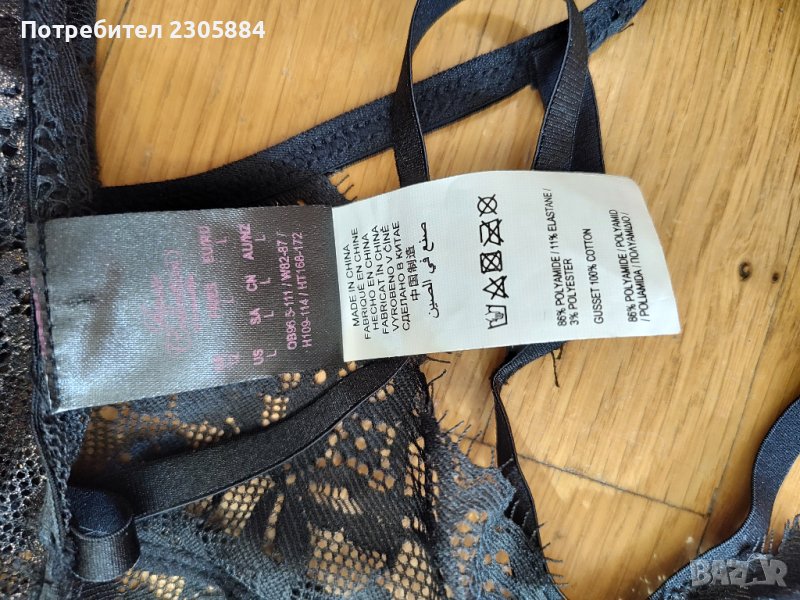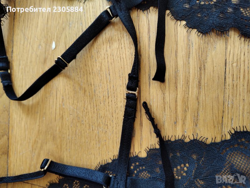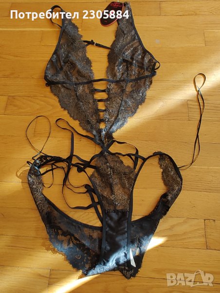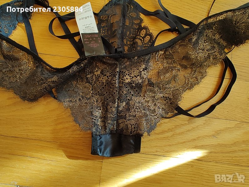 Луксозно бельо на hunkemuler. Цвят черно и златисто . Ново с етикет. Размер Л. Едната от закопчалките на гърба се скъса. Възможно е да се замени. Продава се понеже не се ползва.