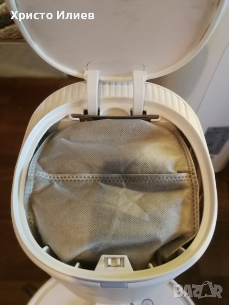 Насладете се на чист дом в продължение на седмици: Всмукателната станция в перлено бяло изпразва автоматично торбата за прах с капацитет 2,5 L. Улавя косми и прах до 30 дни