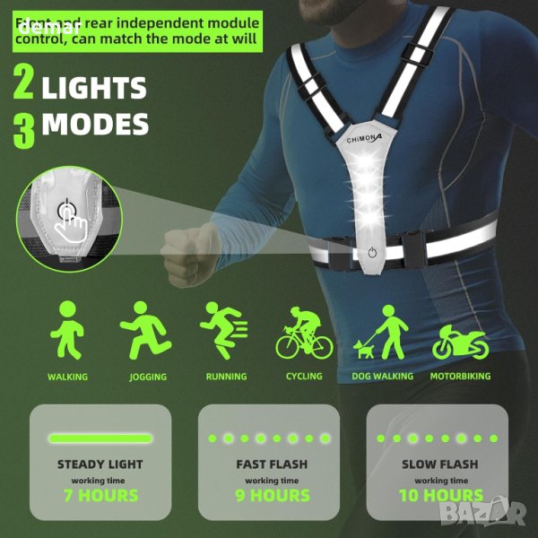 Представяме ви иновативната LED отразяваща жилетка на LuTuo за висока видимост. Той съчетава перли от LED лампи с висока яркост и отразяващи ленти, за да предложи 360° видимост, осигурявайки безопасност дори при условия на слаба светлина с видимост над 300 метра. За разлика от традиционните светлоотразителни жилетки, тази светеща жилетка разполага с 8 LED лампи с висока яркост за превъзходна видимост през нощта. Лек със само 139 грама, той е удобен и преносим, с регулируеми размери на раменете и талията. Плюс това, той е презареждаем с USB-C, осигуряващ 7-10 часа живот на батерията с режими на бърза светкавица, бавна светкавица и постоянна светлина. Бъдете в безопасност с издръжливата, лека и регулируема LED отразяваща жилетка на LuTuo.