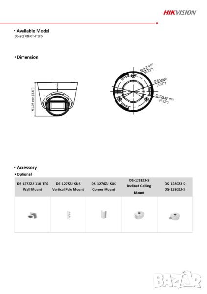 Hikvision-C DS-2CE78H0T-IT3FS2 5MPx Aудио Камера Вграден Микрофон Коакситрон 40М Нощно IR Разстояние