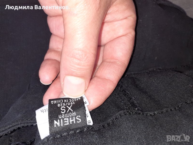 Материята е като дънкова,но е панталон,с дълбока талия.По етикет е ХС,но е уголемен и много еластичен.Аз съм М и ми става.