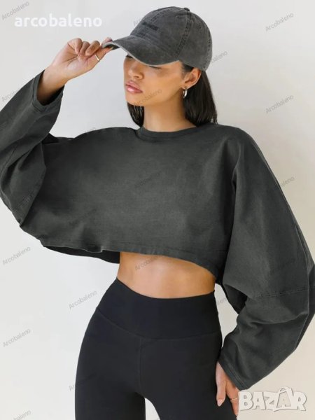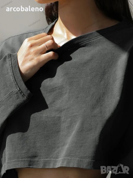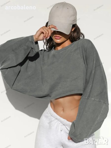 Дамски суичър с кръгло деколте и висока талия, 4цвята