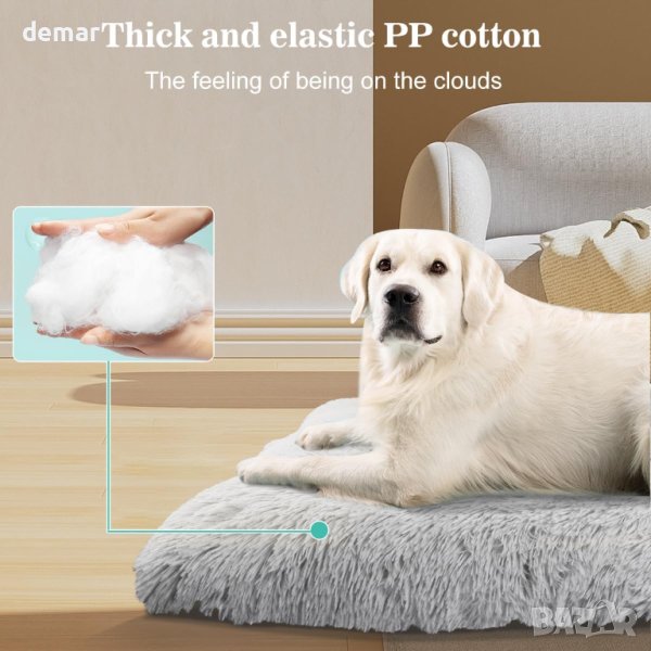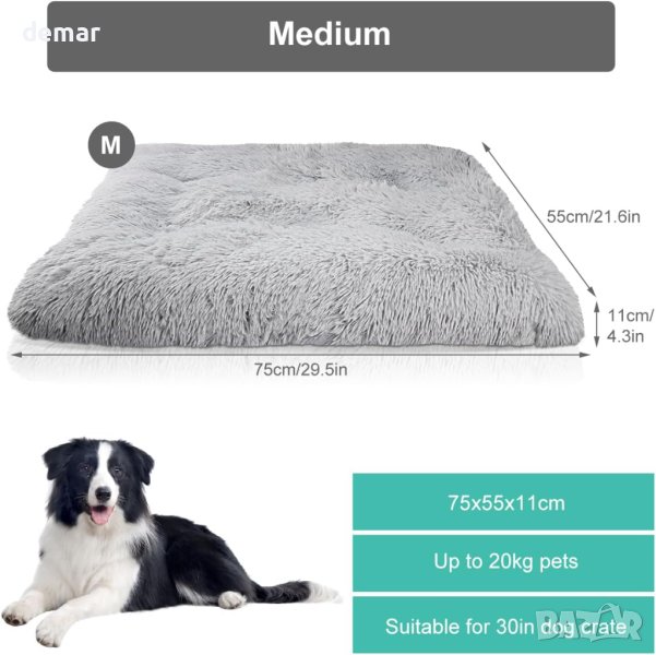 легло за кучета. С размери 76x54x11 см, той е идеален за малки и средни кучета до 44 lb и пасва на 30-инчови стандартни щайги. Плюшено сивата външна част и уютната PP памучна подплата създават топло и удобно място за почивка на вашия домашен любимец, независимо дали у дома или на път. Нехлъзгащият му дизайн с гумени точки осигурява стабилност по време на игра и е лесен за почистване, като го хвърлите в пералнята. Използвайте го на леглото, дивана, щайгата или в колата, за да запазите мебелите си без козина и да осигурите на вашия домашен любимец спокойна и уютна почивка по време на пътуванията ви.
