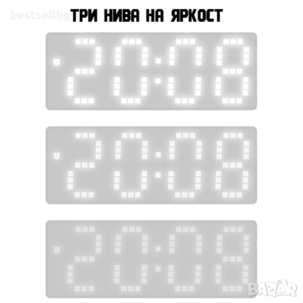 LED цифров часовник с 3 нива на яркост, гласово управление и работа на батерии и на ток