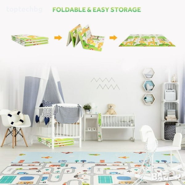 Килимчето е създадено специално за бебчетата и техните нужди затова и ръбовете са заоблени, килимчето е мекичко и приятно на допир.