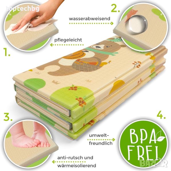Килимчетата са водоустойчиви и това ги прави много подходящи за бебета с рефлукс, течащи лигички или ако се излее течност върху килимчето.