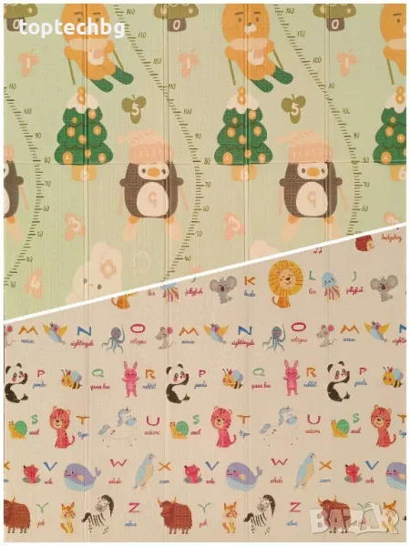 Материала е XPE, което представлява микропорста гума, която е чудесен изолатор и освен, че предпазва децата от студеният под през зимата, също така и омекотява, когато детето падне на земята.