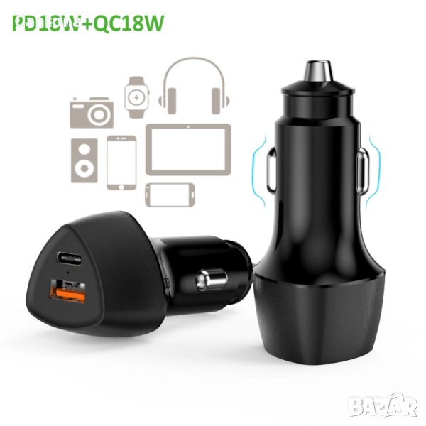 SUNDAREE 36W, PD и QC 3,0 двоен адаптер за бързо зареждане за кола