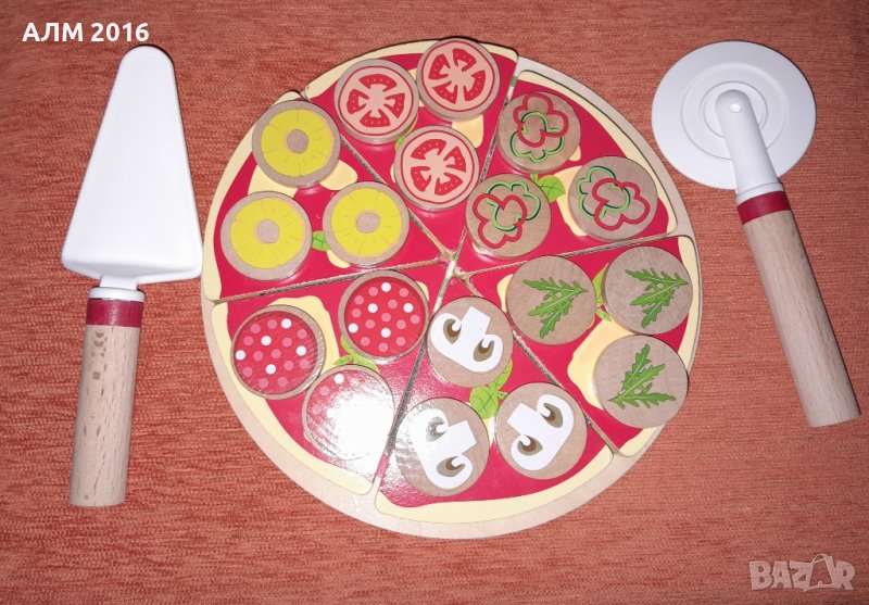 Дървен комплект Пица , Гофретник , Суши ,Торта ,Закуска, дървени играчки за детска кухня → Обява 42823340