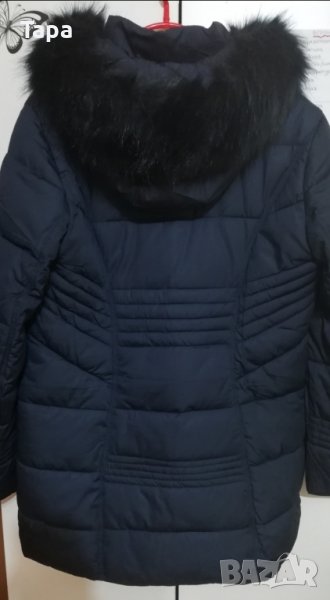 Дамско зимно яке с подвижна качулка и поларена подплата. Дължина - 82 см, гръдна обиколка - 110 см.