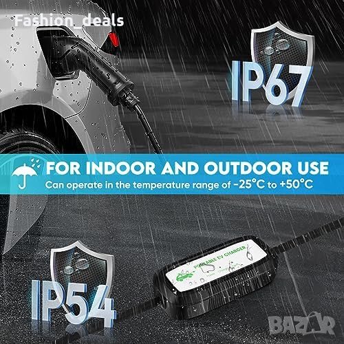 Нов Водоустойчив EV Заряден Кабел за кола FNRIDS, 3.3KW, LED Индикатори, 6м