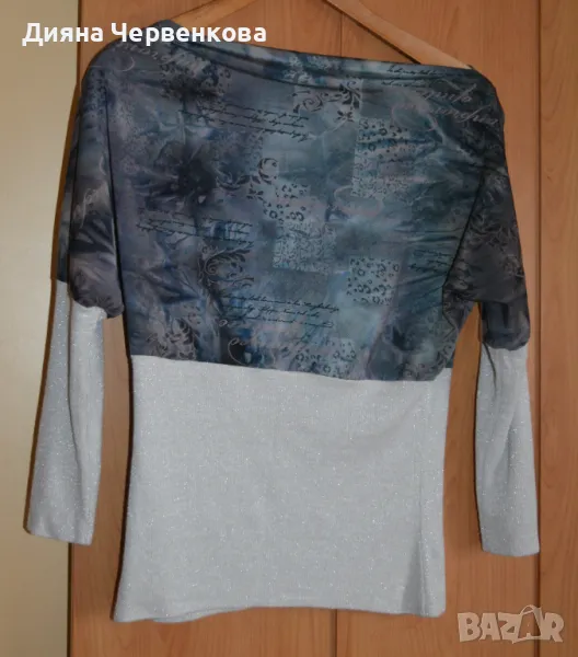 Over size: XL÷2XL; БГ № 48÷50. Талия 86, в най-долната част 104 см, дължина на ръкава от подмишницата 48 см, дължина на блузата от рамото 62 см. Много мека и удобна, С 7/8 ръкав. Като нова е, не личи, че е носена. Продавам я защото не ми става. Изпращам чрез Еконт/Спиди до офис/до адрес посочен от получателя, с опция преглед и тест преди заплащане.
