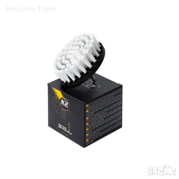 K2 Brill е висококачествена четка, монтирана на бормашина или винтоверт. Предназначена за почистване на тапицерии, килими и пластмаси и др.