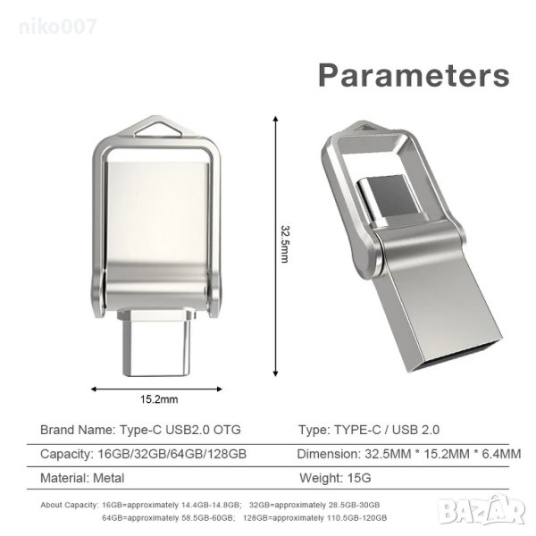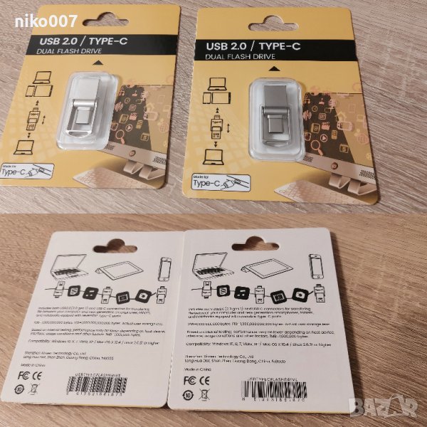 USB 2.0 флаш памет 64GB-флашка 2В1 TYPE C-USB Flash Drive → Обява 42828501