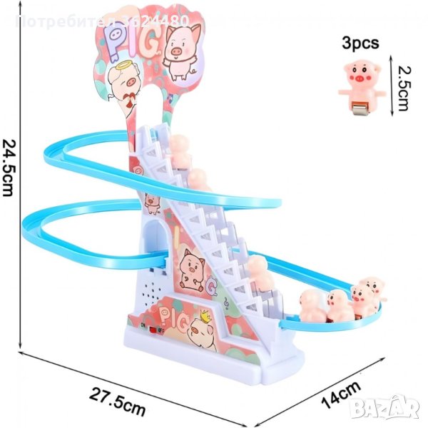 Музикална играчка ескалатор и пързалка в комплект с 3 прасенца - забавление, което не спира.