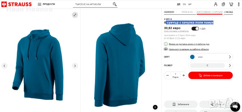 суичър с качулка поли памук