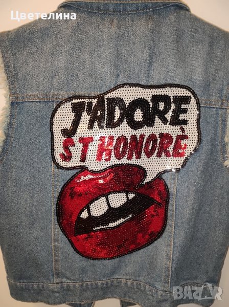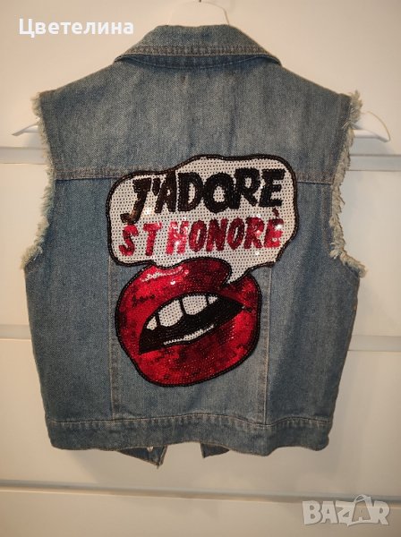 Дънков елек J'ADORE с пайети на гърба размер S/M цена 20 лв. + подарък обеца с камъни за ляво ухо