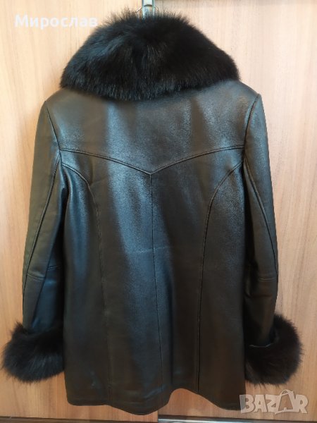 Кожено яке с много богата яка от естествен косъм от лисица. Якето е