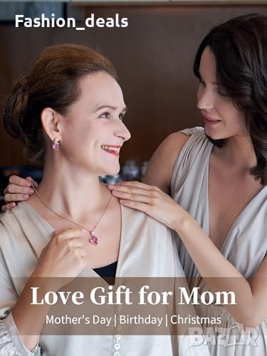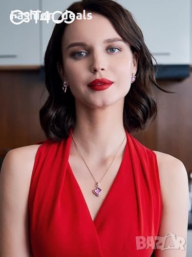 Нов Дамски Комплект Огърлица Обеци Сърце Роза Изискан Подарък за жена