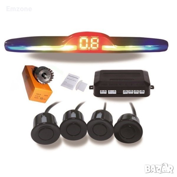 Парктроник Паркинг Парк Сензор 4 датчика с SLIM LED Дисплей и Звуков Сигнал Автомобил МПС 12V → Обява 42833921