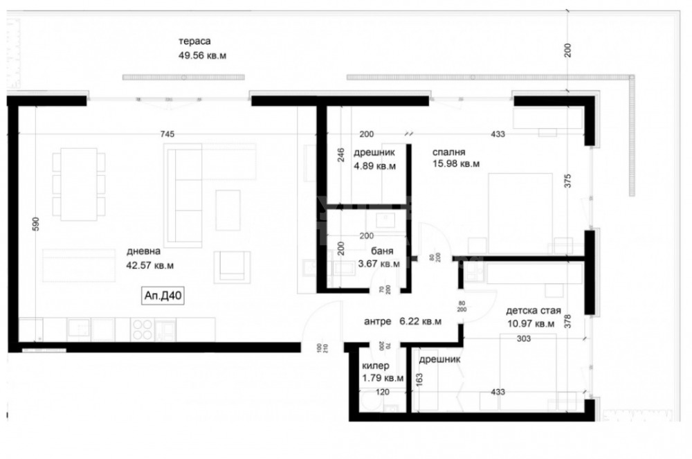 просторна дневна с кухненски бокс (42.57 кв.м.)