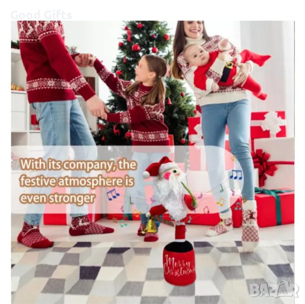 Включете превключвателя и прекрасният Дядо Коледа ще извие тялото си с мигаща LED светлина, докато пуска красива музика, за да донесе радост. Освен това може да записва това, което казвате, и да го повтаря с много интересен глас, карайки ви да се смеете.