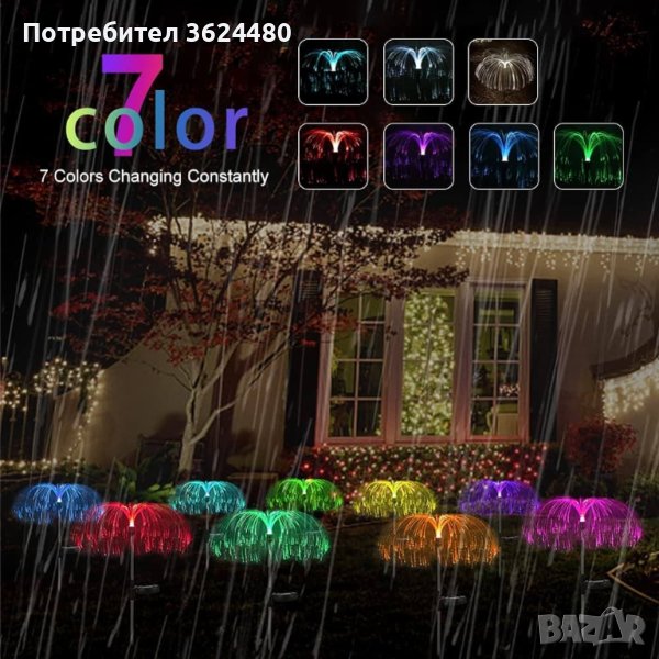 Градинска соларна LED лампа Медуза - светеща в 7 цвята