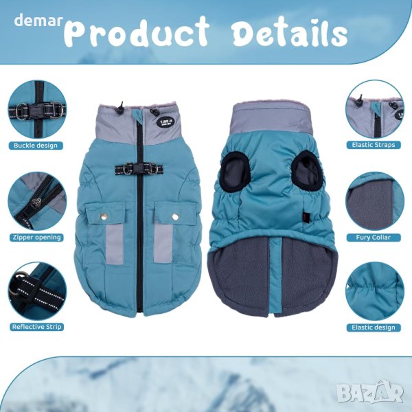 Палтото 2 в 1 Dog Harness Coat, универсално решение за малки и средни кучета. Това кучешко палто е предназначено да стопли вашия домашен любимец в студено време и разполага с вграден удобен колан, който гарантира, че няма да нарани гърдите или предните крака на вашия домашен любимец. Изработено от топъл памук и полар, то е подходящо за различни породи кучета и идеално за ежедневно носене, както на закрито, така и на открито. Водоустойчивият и ветроустойчивият материал поддържа вашия домашен любимец сух, а отразяващата лента добавя видимост при нощни разходки. С цип на гърба и регулируеми еластични презрамки, това кучешко палто е едновременно практично и безопасно за вашия космат приятел.