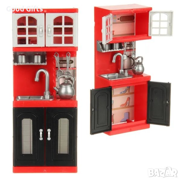 Оборудване за куклената къща, развива креативността на детето, има подвижни елементи - отварящи се вратички. Комплектът кухненски мебели е необходимо оборудване за всяка къща за кукли на вашето дете. Мебелите ще доставят много забавления на всяко дете