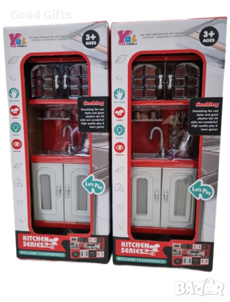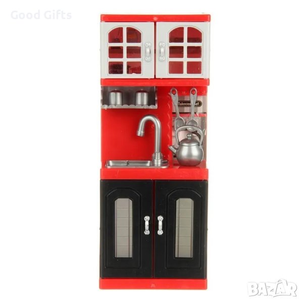 Комплект миниатюрни кухненски модули. Играчката е с реалистичен дизайн и атрактивни цветове. Комплектът включва кухненски комплект, чайник и кухненски инструменти.