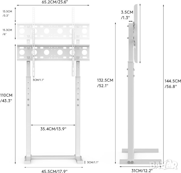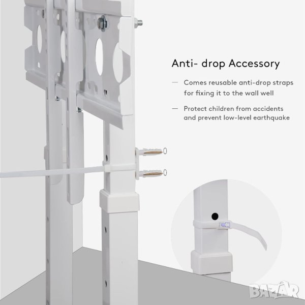 висококачествен метал и издържа натоварване до 40 кг, , гарантирайки, че Вашият телевизор е безопасно и