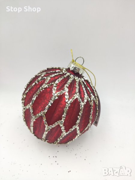 Стъклена коледна топка 10 см диаметър Ръчно изработена → Обява 42840884