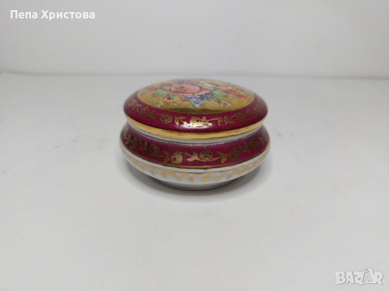 Малка кутия за бижута от френски порцелан Limoges с флорални мотиви. - R. Pragout