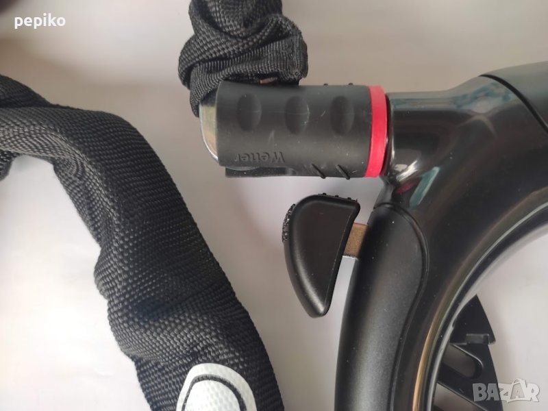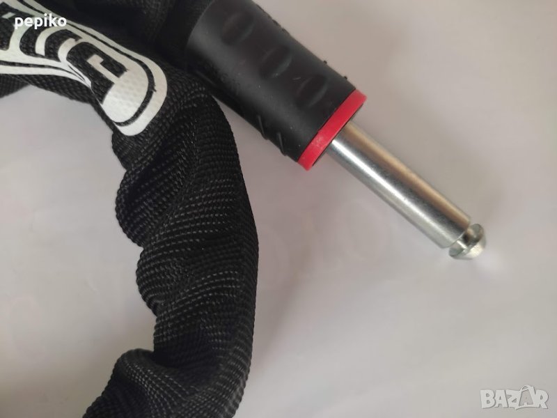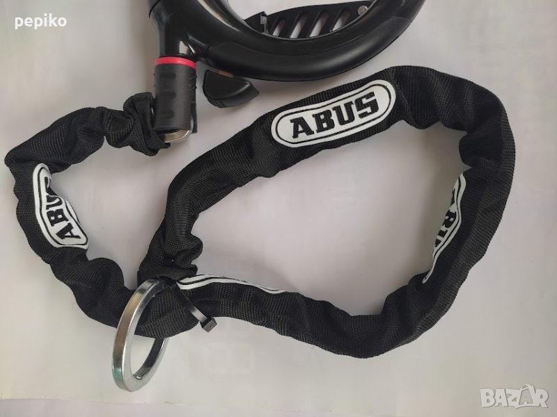 НОВА ключалка заключващо устройство за велосипед ABUS,производител Германия,много здрава ключалка с ниво на сигурност 9 от 15,захващане на задната вилка под седалката,всичко е изработено от специална закалена стомана,дебелина на заключващата скоба 8,5 мм.тегло 680гр.дължина на веригата 85-100см.два секретни ключа с карта,чантичка за прибиране на веригата закрепваща се за рамката,квадратна верижка с дебелина 8мм.