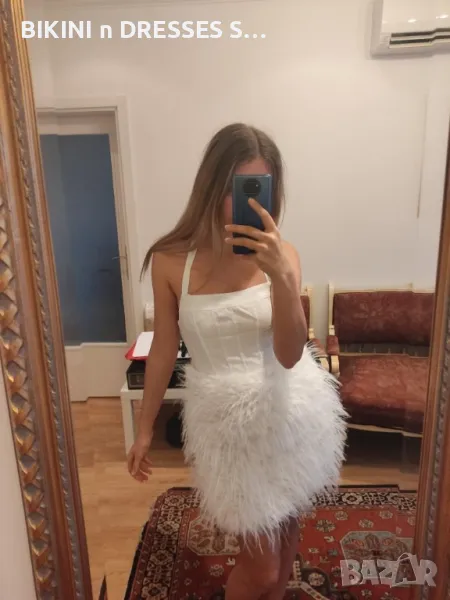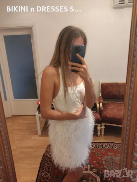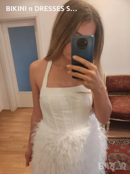 Елегантна бяла рокля с пера → Обява 42842928