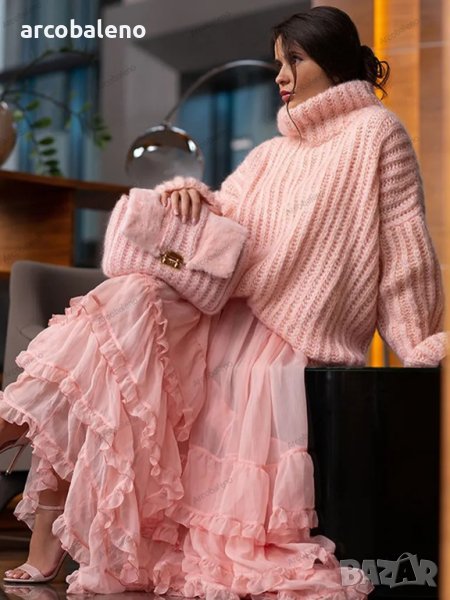 Нов дамски пухкав пуловер с дълъг ръкав, 4цвята