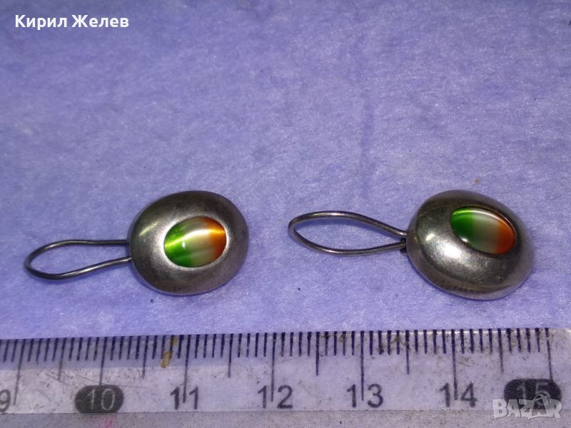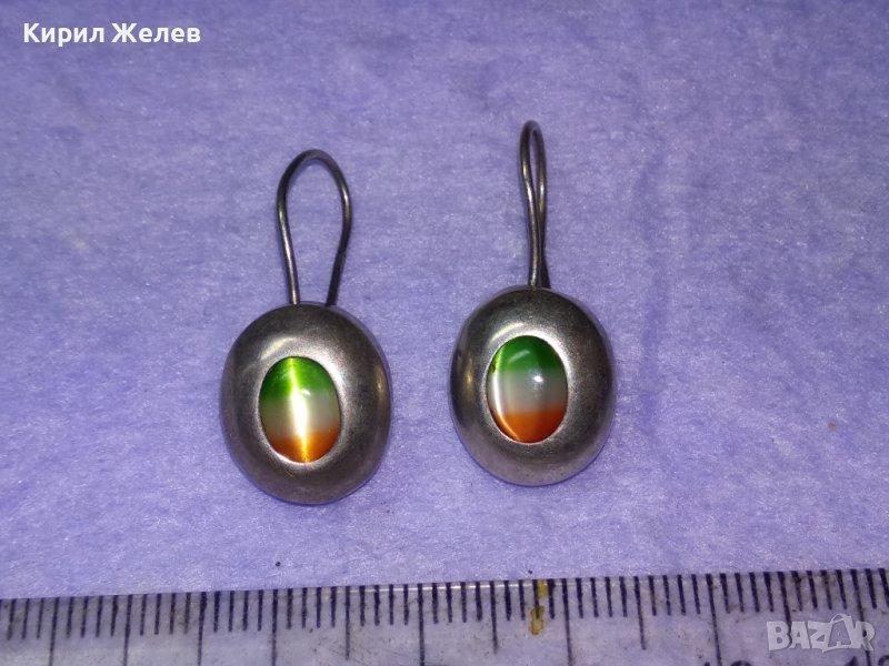 Стари ИТАЛИАНСКИ СКЪПОЦЕННИ СРЕБЪРНИ РЕТРО ОБЕЦИ СРЕБРО 925 с КРИСТАЛИ ШЛИФОВАНО КОТЕШКО ОКО 40207